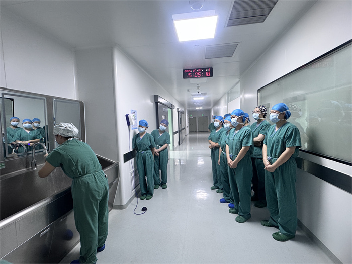 在接下来的环节中,外科组长王永梅现场展示了外科洗手的标准步骤,每一个细节都关乎着无菌屏障的可靠性,让大家对无菌操作的重要性有了更深刻的体会。而在微创手术间内,王永梅演示的腔镜仪器拆卸与组装更是让大家跃跃欲试。部分参观人员亲自上手操作,学习如何快速、准确、无损伤地组装镜头系统、安装各类操作器械,过了一把 “手术器械师”的瘾。
